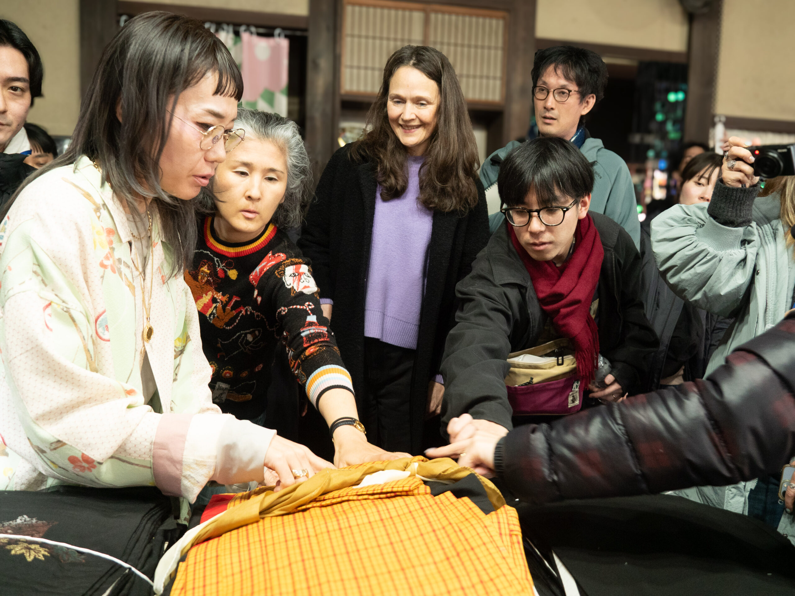 一方は発酵料理を学び、もう一方は着物のほどき方を学びます。